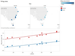 This data set contains means and standard deviations (SD) of wing area (mm2) for females and males of 19 Drosophila melanogaster locations collected at 11 latitudes in 2000 (extracted from Fig.1).